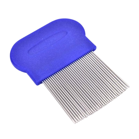 - Peine (liendrera) de acero inoxidable para remover liendres y piojos muertos facilmente